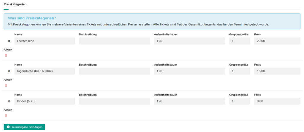 1. Event und Ticket mit Preiskategorien anlegen