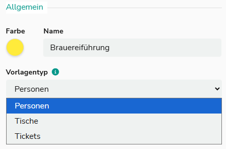 Wähle als Vorlagentyp Personen, um dem Gast je Person die Wahl zwischen den Preiskategorien zu lassen: