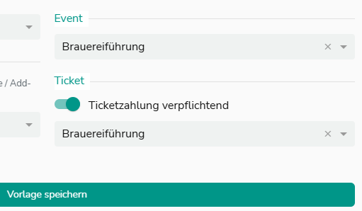 Wähle das Event Brauereiführung und das hinterlegte Ticket mit den verschiedenen Kategorien. Wähle das Ticket direkt, wenn nur eins hinterlegt ist. Stelle ein, ob der Gast auch eine Reservierung ohne verbindliche Zahlung tätigen darf.