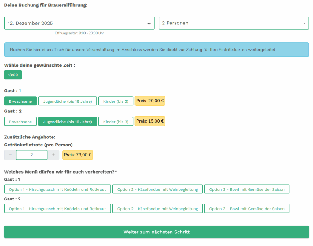 Buchungsmaske Brauereiführung im Testsystem – hier klicken!