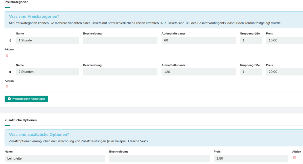 Wenn du an verschiedenen Wochentagen unterschiedliche Preise anbietest, legst du sie als neue Tickets an: